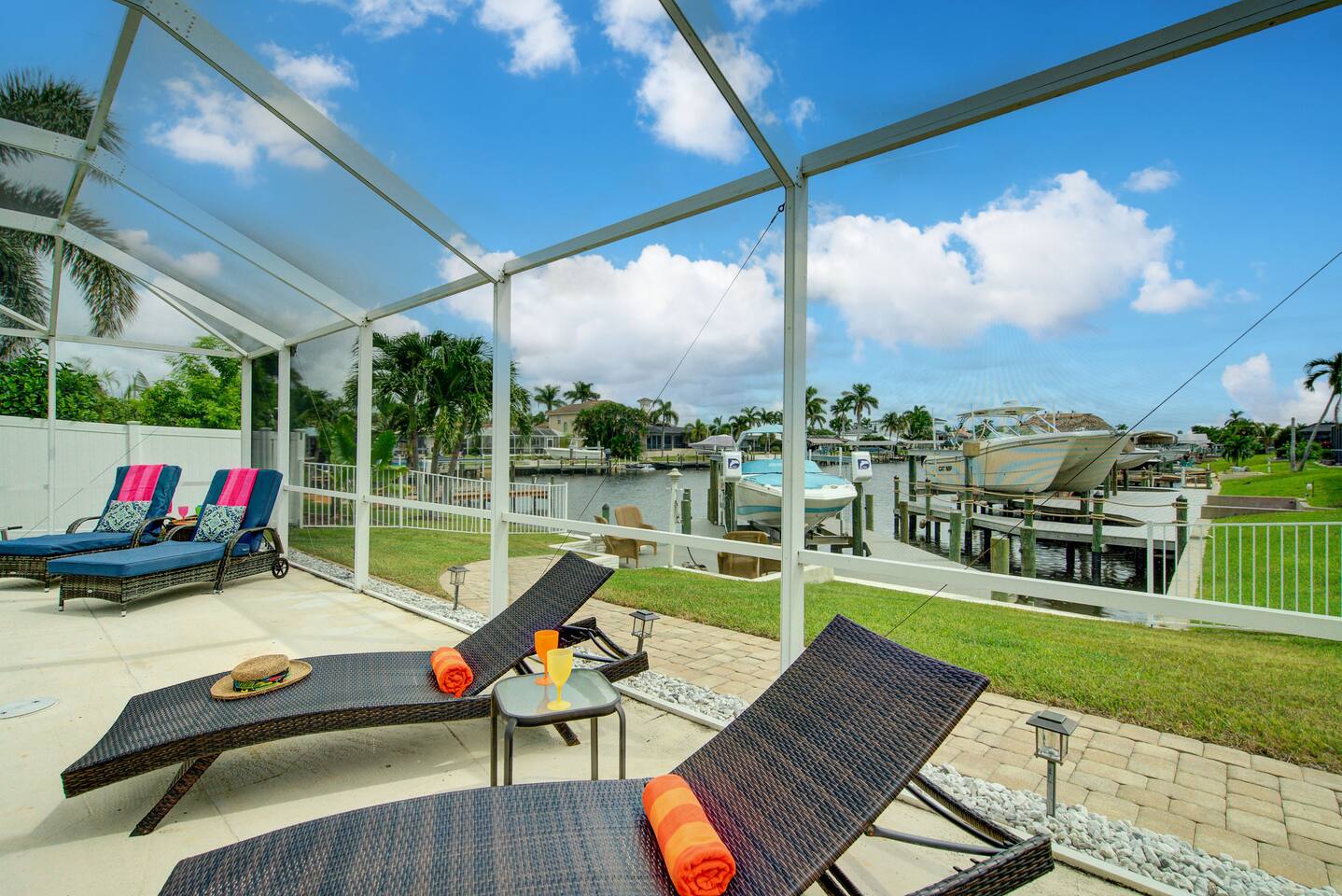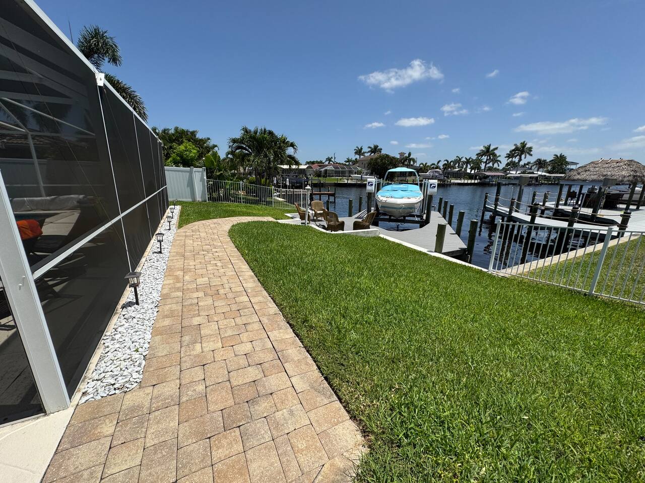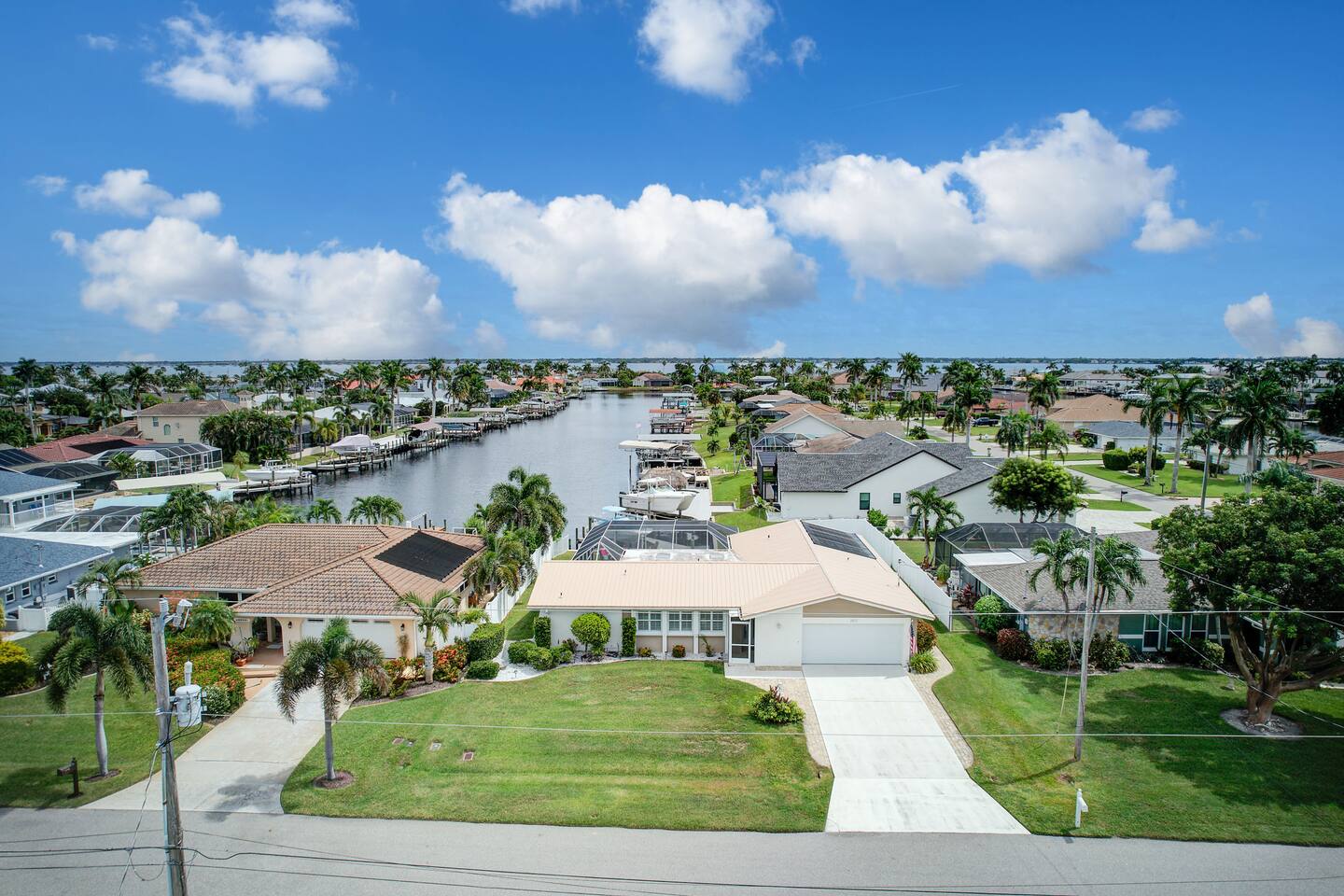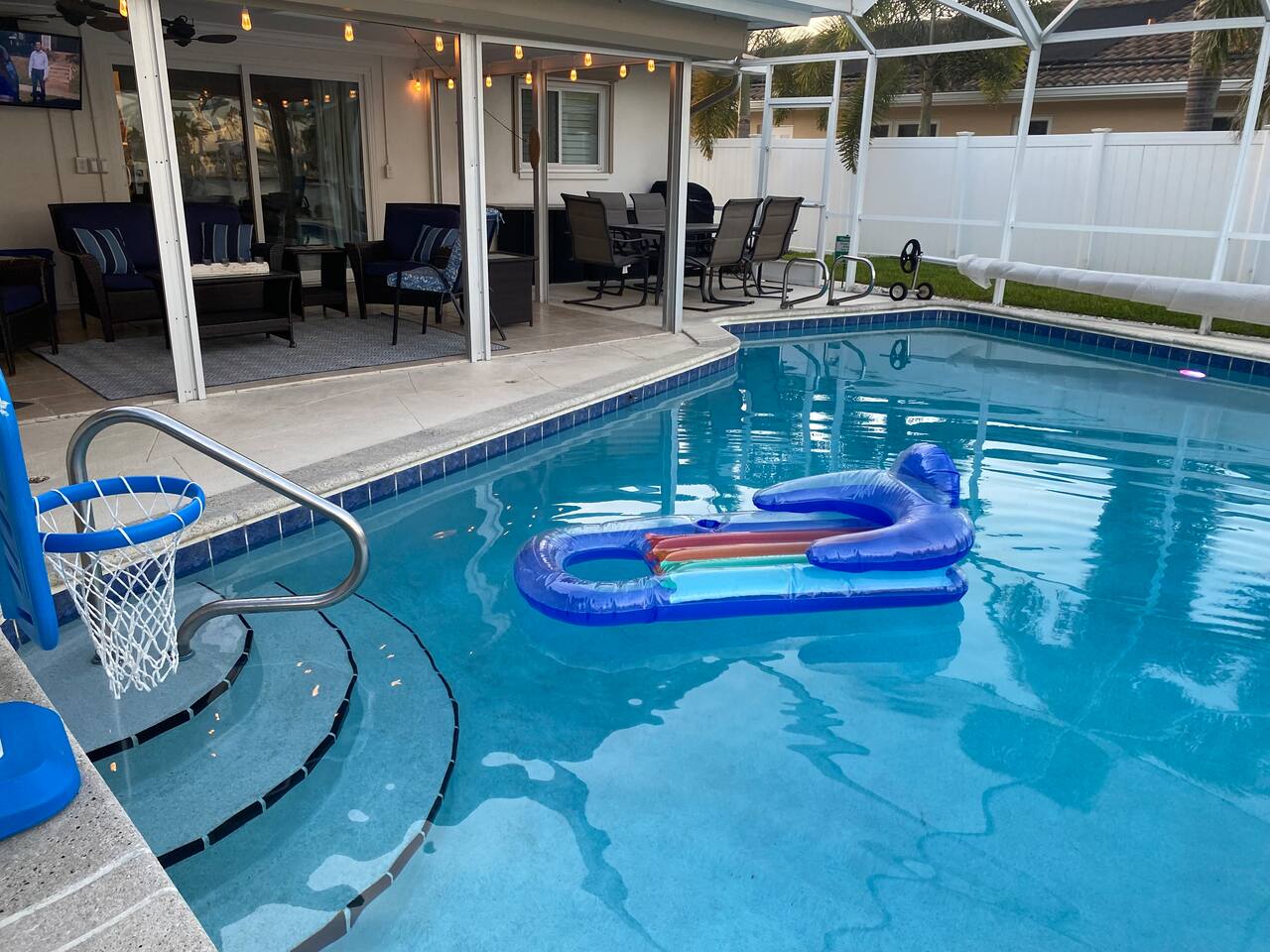 🌴 Peaceful Waterfront Escape in Cape Coral Welcome to your peaceful waterfront getaway in Cape Coral’s beautiful Southeast quadrant — just minutes from Fort Myers and with 5-minute Gulf access for endless days on the water. Bring your own boat or rent ours right from the dock and set out for a day of fishing, island hopping, or watching dolphins play! This spacious 4-bedroom, 3-bath home sleeps 8 comfortably and is designed for relaxation, fun, and making memories. The open layout connects the bright living room, modern kitchen, and dining area, creating the perfect flow for families and friends to gather. Step outside to your private screened-in pool and large patio, complete with outdoor dining, a grill, and a flat-screen TV — ideal for enjoying the game while soaking up the Florida sunshine. When it’s time to unwind, the air-conditioned game room offers a cool retreat with entertainment for all ages. ⸻ 🏠 Bedrooms & Bathrooms • Primary Suite: King bed, ensuite bath, water views, and private patio access • Guest Room 2: Queen bed, bright and cozy • Guest Room 3: Queen bed, perfect for couples • Guest Room 4: Two twin beds — great for kids or friends • Bathrooms: 3 full baths stocked with towels and essentials ⸻ 🍳 Kitchen & Dining A fully equipped kitchen with stainless steel appliances, cookware, and all the essentials you’ll need. Enjoy breakfast at the island bar or dinner at the indoor dining table overlooking the pool and canal. ⸻ 🌅 Outdoor Living • Private screened-in pool • Spacious patio for alfresco dining & grilling • Outdoor TV & lounge area • Canal access with boat dock & lift • Peaceful water views perfect for morning coffee or sunset cocktails ⸻ 📍 Discover the Area Experience all that Cape Coral and Fort Myers have to offer — your waterfront home is close to everything! • 🐬 Dolphin & Sunset Tours – 5–10 min Launch from nearby marinas for unforgettable wildlife encounters and sunset cruises. • 🍹 Waterfront Dining – 5–15 min Visit Rumrunners (10 min), The Boathouse (12 min), Fathoms (14 min), and Marker 92 (15 min) for food with a view. • 🏖️ Beaches – 25–35 min • Fort Myers Beach: 30 min • Sanibel Island: 35 min • Lovers Key State Park: 35 min • 🛥️ Boating Adventures – 5 min to Gulf access Cruise the Caloosahatchee River for island hopping, fishing, and dolphin spotting. • 🌳 Nature & Parks – 10–20 min • Four Mile Cove Ecological Preserve: 10 min • Rotary Park Environmental Center: 15 min • Lakes Park (Fort Myers): 20 min • 🛍️ Shopping & Entertainment – 10–25 min • Cape Coral Parkway Shops & Dining: 10 min • The Forum (Fort Myers): 20 min • Gulf Coast Town Center: 25 min • ⛳ Golf & Family Fun – 15–20 min • Coral Oaks Golf Course: 18 min • Sun Splash Family Waterpark: 15 min • Jungle Golf (Fort Myers): 20 min Whether you’re here to relax, explore, or play, everything Southwest Florida offers is right at your fingertips — all within a short drive from your Cape Coral retreat! ⸻ 🚗 Getting Around A car is highly recommended to make the most of your stay in Cape Coral and the surrounding Gulf Coast area. The neighborhood is peaceful and residential, yet conveniently close to restaurants, shopping, and attractions. • 🚙 Downtown Cape Coral: 10–12 min • 🌉 Fort Myers River District: 15–18 min • ✈️ Southwest Florida Intl. Airport (RSW): 30–35 min • 🏖️ Fort Myers Beach: 30 min • 🏝️ Sanibel Island: 35 min • ⛽ Gas stations, groceries, and local shops: Within 5–8 min Ride-share options like Uber and Lyft are readily available, and local marinas offer boat rentals and charters if you’d like to explore by water. With easy access to Del Prado Blvd and Cape Coral Parkway, you’ll be perfectly situated for beaches, shopping, and day trips throughout Southwest Florida.