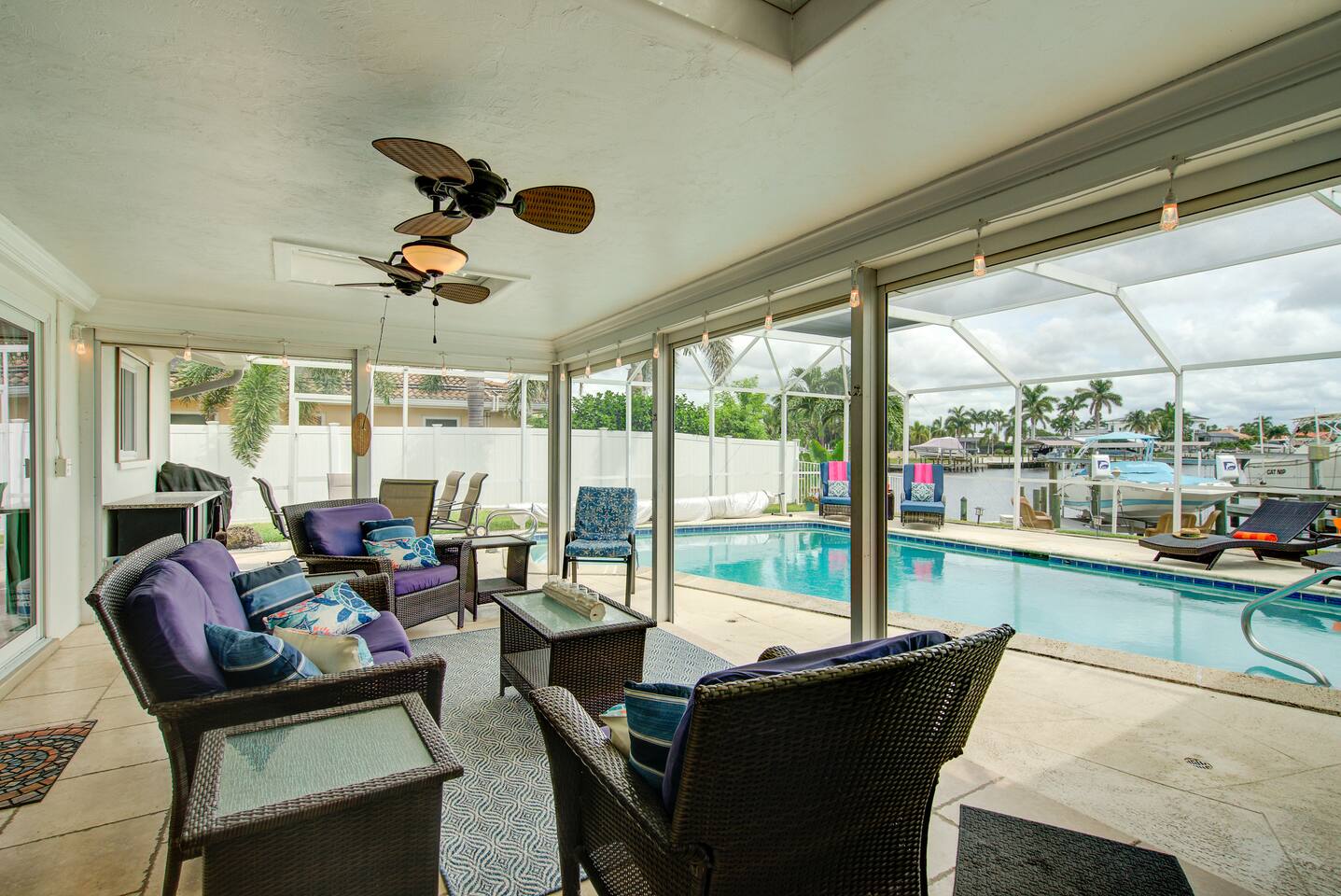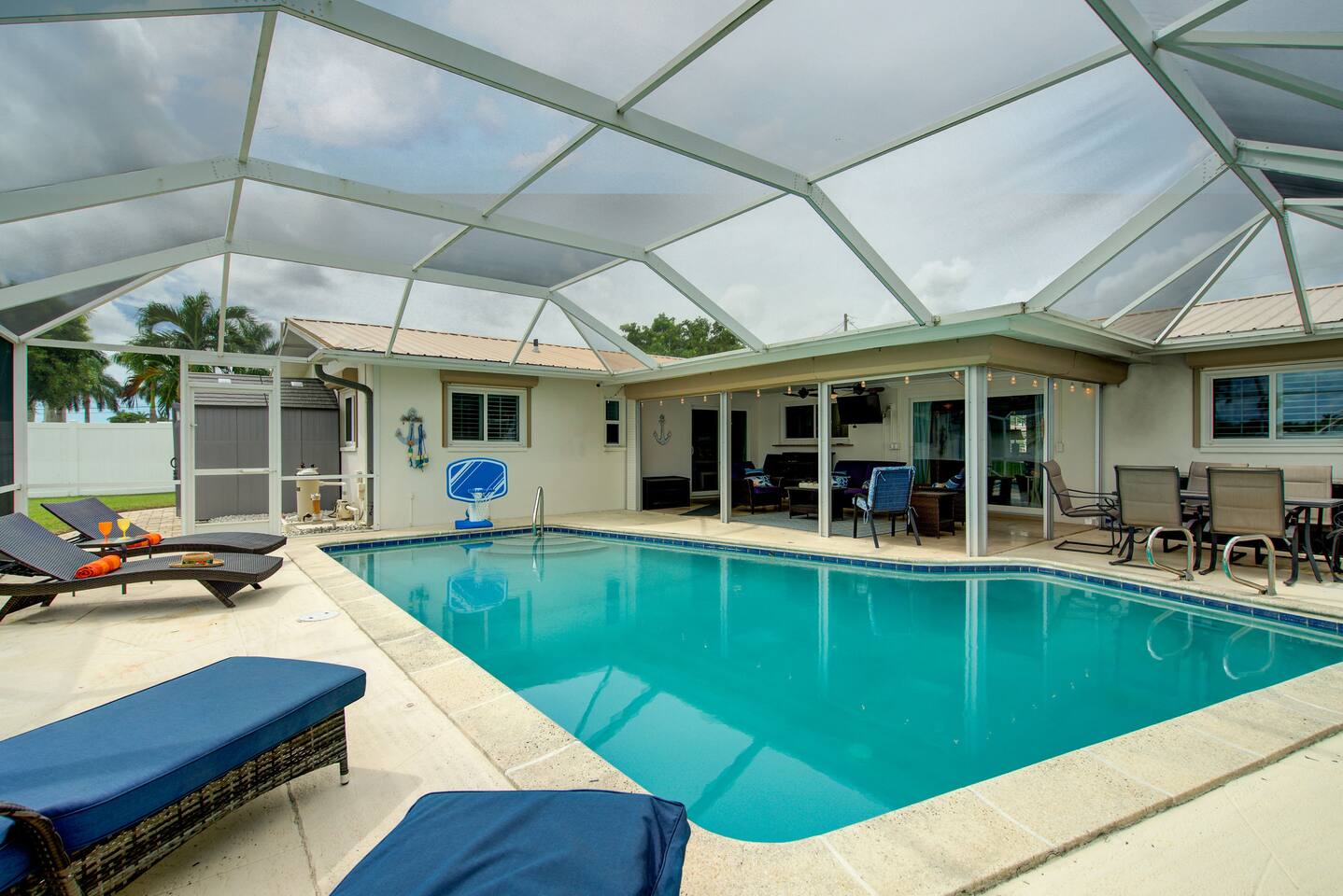 Peaceful Cape Coral Airbnb near Fort Myers! Waterfront vacation rental located in the Southeast quadrant of Cape Coral with 5-min access to Gulf Coastal waters. Bring your own boat or rent ours! Sleeps 8 in 4BR/3BA. Enjoy the screened-in pool, air-conditioned game room, and spacious patio for alfresco dining, grilling, or watching the game on the outdoor TV. Minutes from waterfront restaurants, dolphin tours, beaches, and nature preserves. Ideal Florida getaway for families or friends!